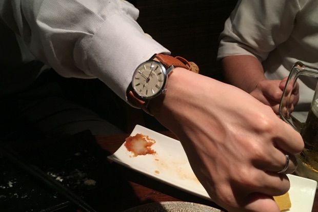普段は腕時計を全くしない人なので記念品程度に、と、思っていたが、すぐに巻いていただけて光栄である。