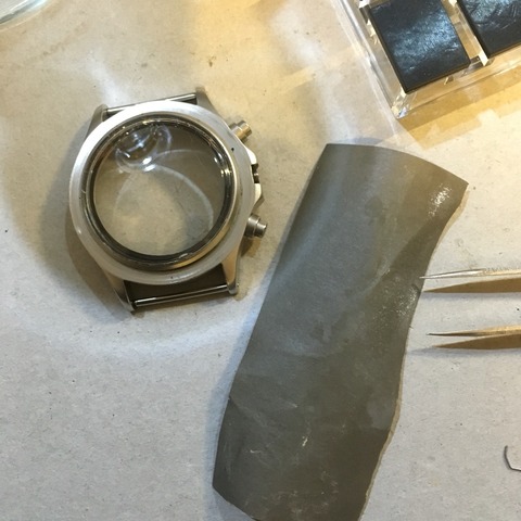 ベゼルを抉って取り外し、溜まりに溜まったゴミを掃除。2000番のサンドペーパーでゴシゴシこすり大きめの傷を取り除き、その後はサンエーパールとキングブライトで研磨。その後再組み立て。