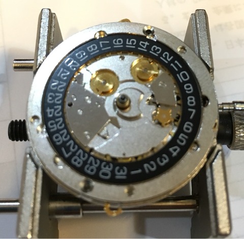 日付やデイト部分はモジュールになっているので、取り外す。すると、以下の様になる。