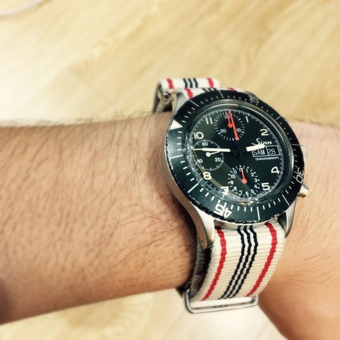 それだけキツくはめてあるということは、ほんとしっかり作ってあるんだなぁ、と、感心。というのも、クロノグラフでリセットによりゼロ帰針する部分は、急な回転に耐えるためきつく固定される必要があるのである。SEIKOのクロノとかだと、ホゾの形が真円でなかったりする。